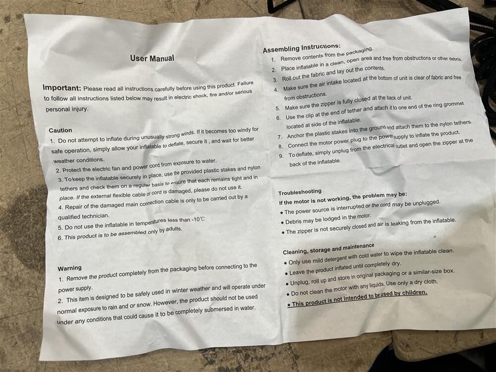 Crafted with high quality materials, it is perfect for outdoor use. The built-in air blower ensures effortless inflation. For quick storage, simply unzip and deflate. Ropes are also included for secure anchoring, bringing you peace of mind. Create a magical holiday display effortlessly with this delightful inflatable centerpiece!