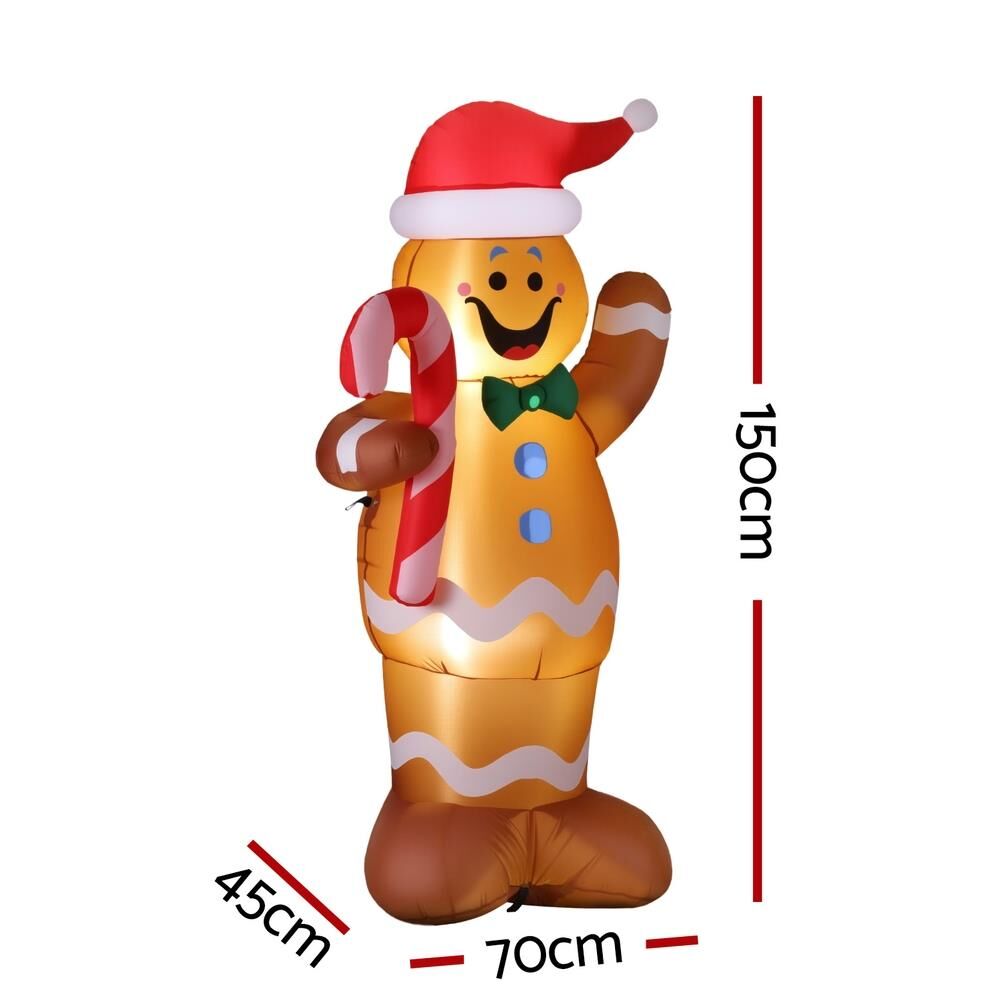 Jingle Jollys Christmas Inflatable Gingerbread Man LED Decor Illuminated 1.5M