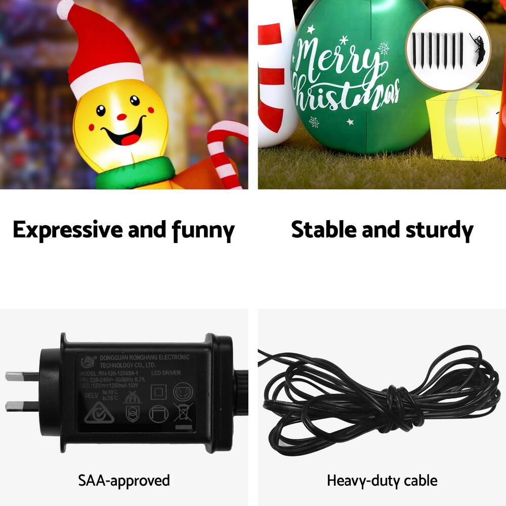 Jingle Jollys Christmas Inflatable Gingerman Joy 3M Long Outdoor Decorations Illuminated