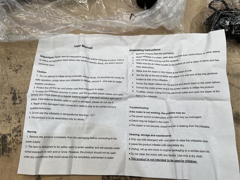 Crafted with high quality materials, it is perfect for indoor and outdoor use. The built-in air blower ensures effortless inflation. For quick storage, simply unzip and deflate. Ropes are also included for secure anchoring, bringing you peace of mind. Create a magical holiday display effortlessly with this delightful inflatable centerpiece!