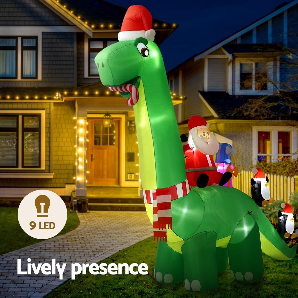 Jingle Jollys Christmas Inflatable Santa Dinosaur 3.8M Illuminated Decorations