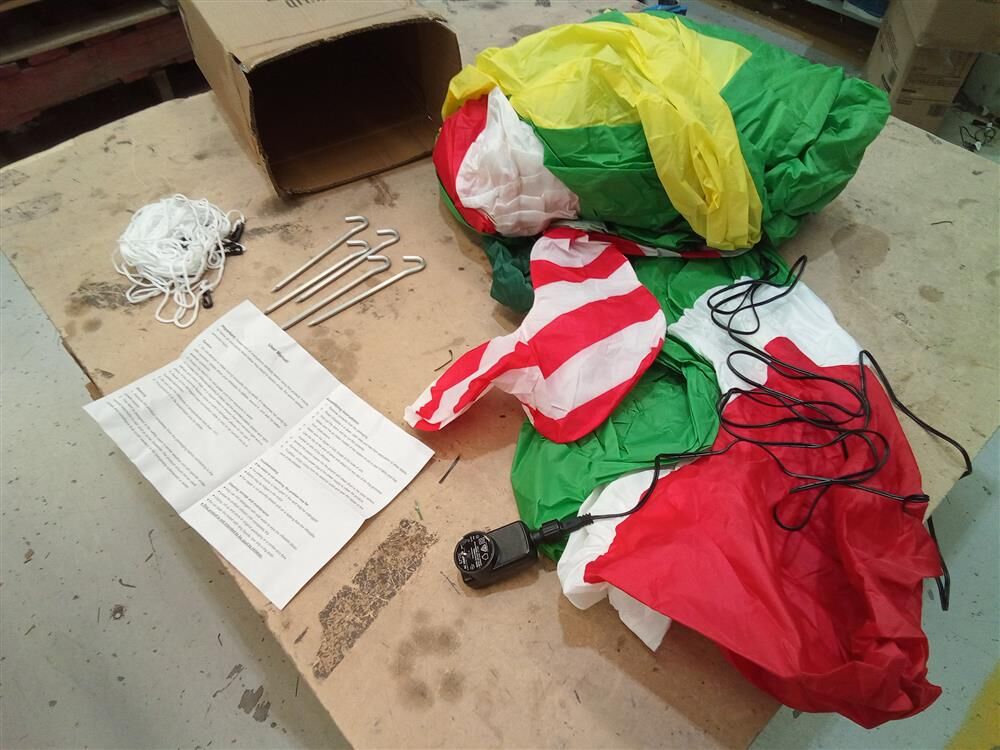 Add festive charm to your home with our Jingle Jolly Christmas Inflatable. Crafted with water-repellent and UV-resistant materials, it is perfect for indoor and outdoor use. The built-in air blower ensures effortless inflation. For quick storage, simply unzip and deflate. Pegs and ropes are also included for secure ground anchoring, bringing you peace of mind. Create a magical holiday display effortlessly with this delightful inflatable centerpiece!