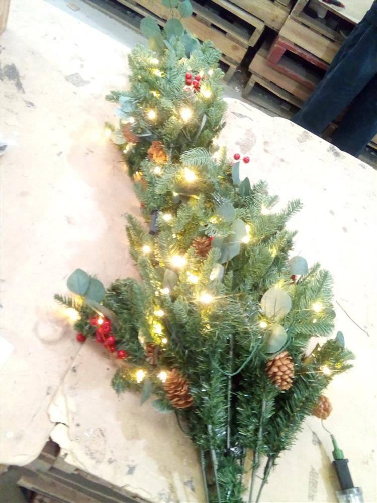 Material: PE + PVC + simulation leaves + 22 strings of red fruit (1 cluster of 10) + 22 plastic pine cones