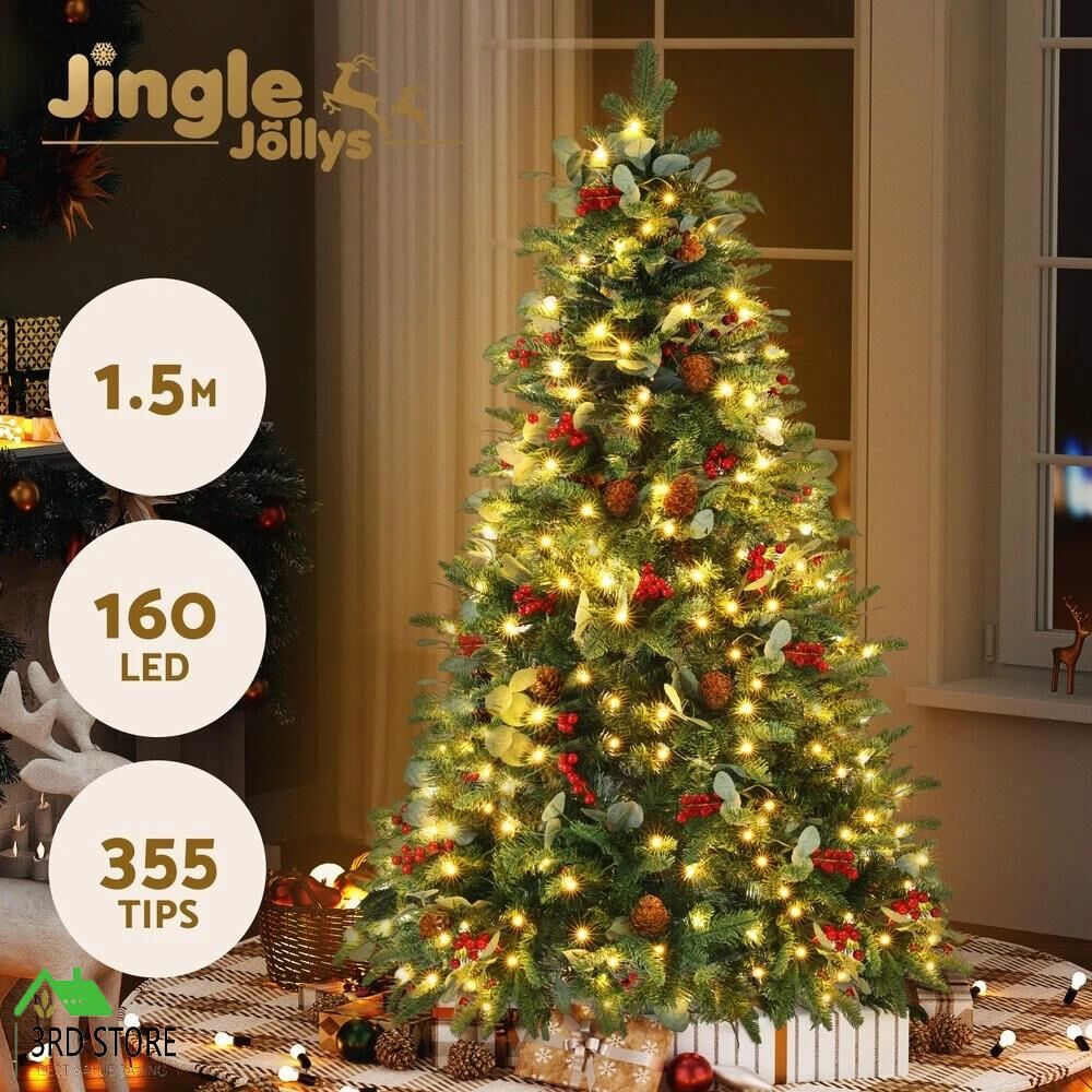 Jingle Jollys Christmas Tree 1.5m 160 LED Xmas Tree Party Decorations 355 Tips