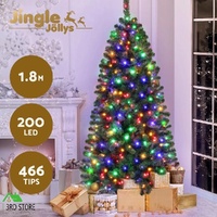This Jingle Jollys 180cm LED Christmas Tree combines elegance and functionality for festive celebrations. Featuring 466PVC tips that mimic real foliage, this pre-lit tree is adorned with 200 vibrant multi-colour LED lights offering 8 adjustable modes to match your holiday mood. The sturdy iron base ensures stability, while the tool-free assembly allows effortless setup. Made from premium materials and compliant with Australian electrical standards (31V 6W transformer included), it's a safe choice for homes. Perfect for creating a warm holiday atmosphere in living rooms or events.