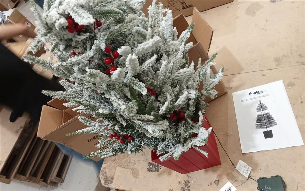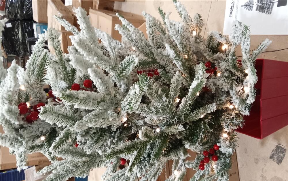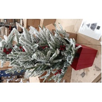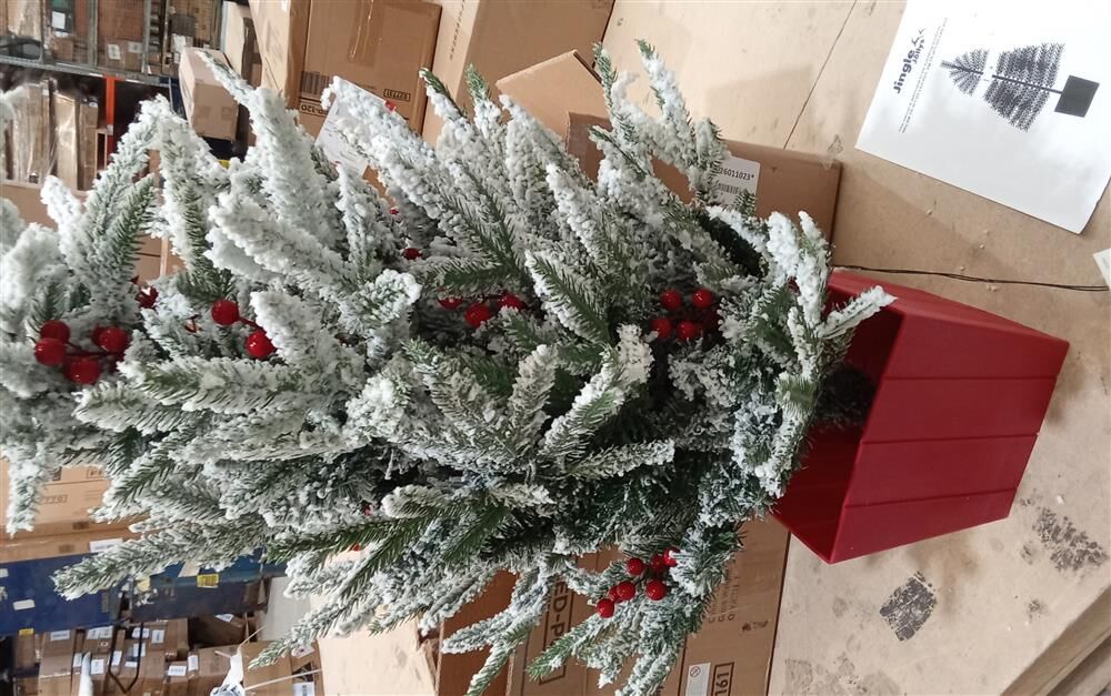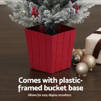 Bring festive joy to your home this holiday season with this 100cm Christmas potted tree from Jingle Jollys. This compact and elegant tree stands out with its warm white LED lights, creating a welcoming glow for any room. The realistic flocked leaves and bright red berries add a touch of natural charm, while the sturdy bucket base ensures stability on any surface. Perfect for small spaces or tabletops, this artificial tree is easy to assemble and disassemble without tools for effortless holiday decorating. Make your home merry and bright—order yours today!
