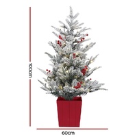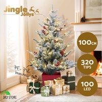 Jingle Jollys Christmas Tree 1M LED Potted Xmas Party Decor Red Barries Flocked