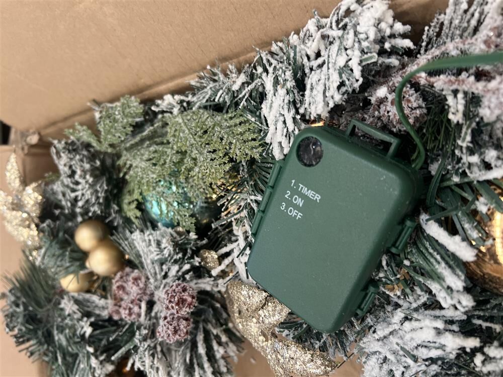Embrace the holiday spirit with this lush, evergreen foliage, adorned with sparkling lights and delightful ornaments. Drape it over mantels, staircases, or doorways, instantly transforming any space into a winter wonderland. Make this season even merrier with the warm glow and delightful charm of our Jingle Jollys Christmas Wreath!