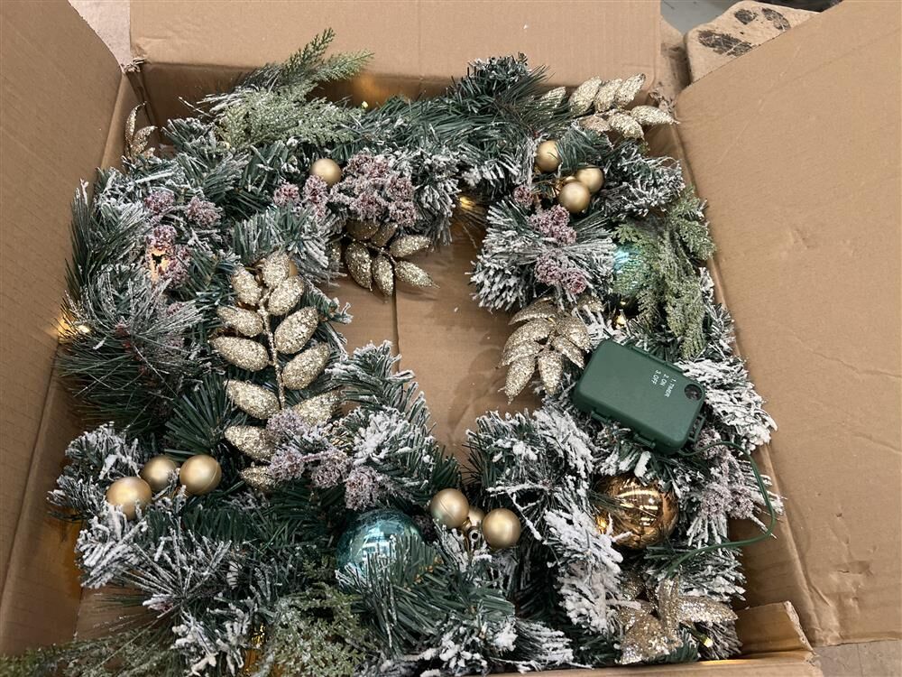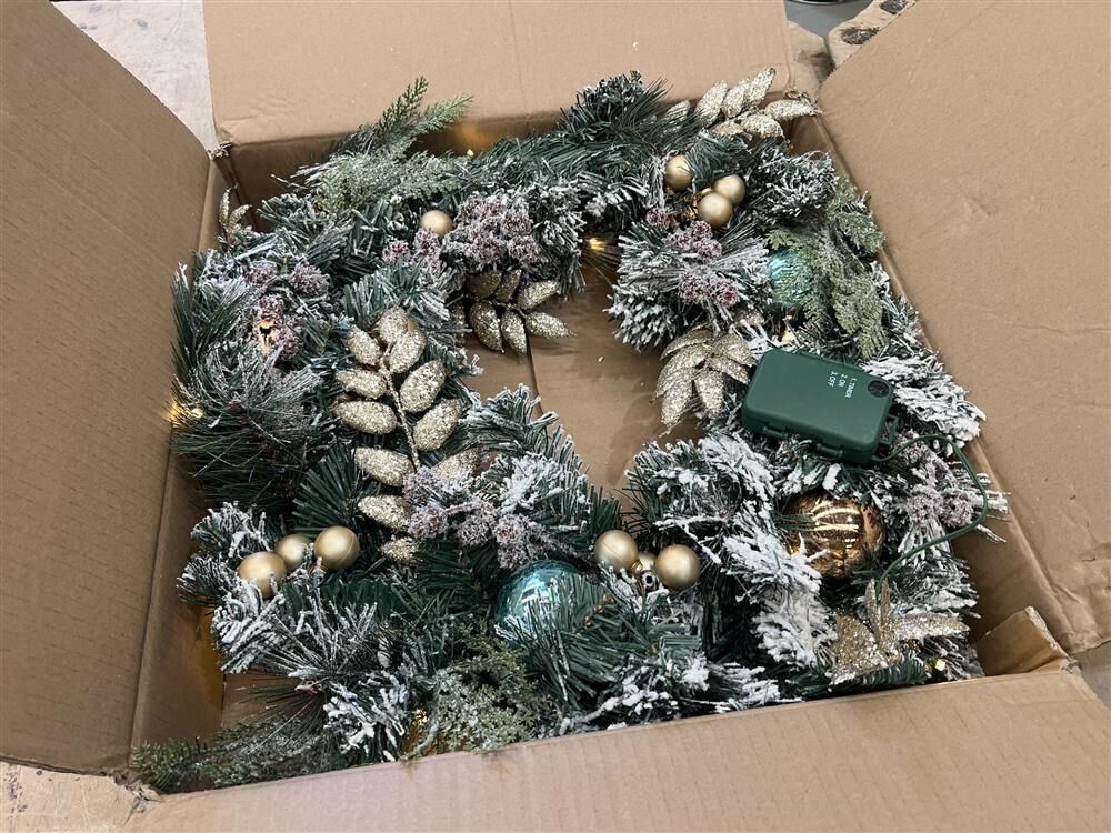Jingle Jollys Christmas Wreath with Pre-Lit Lights Ornament 60CM Xmas Tree Decor