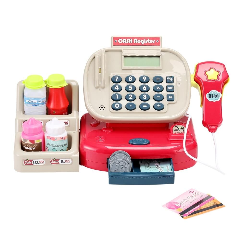 Featuring a colourful cash register pretend play set with 18pcs accessories, this pretend play set is perfect for kids to perform shopping role plays with friends and parents. The play set comes with play fake money and calculator style buttons on top that teach them how to add and subtract basic numbers. Also, included a barcode scanner with sound and lighting features; just like a real one! While the play set provides plenty of fun during play, it is also an excellent educational learning play set for kids; encouraging teamwork, communication, expression and logic exercises. Let's bring this fun and creative cash register pretend play set home for your loving ones.