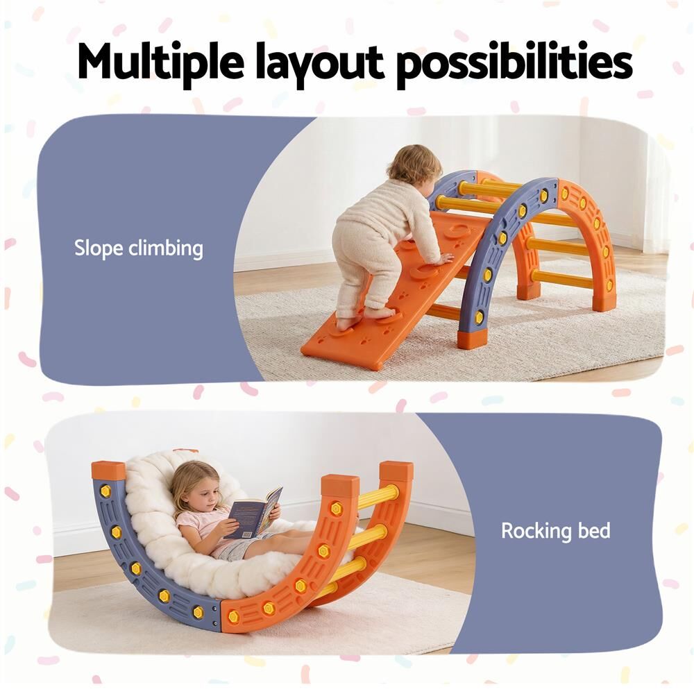 Experience endless fun with the Keezi Versatile Toddler Climber Playset. This multi-functional set easily transforms into a slide, climbing arch, funny tunnel, slope, and rocking bed, offering more play options than traditional wooden sets. Made from safe, easy-to-clean plastic, it is suitable for both indoor and outdoor use and simple to detach for compact storage. The sturdy construction supports up to 50kg, helping kids develop balance, coordination, and confidence while enjoying active play.
