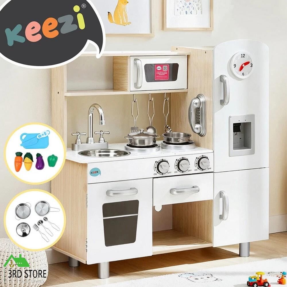 Keezi Kids Kitchen Play Set Wooden Pretend Toys Cooking Children Clock Beige