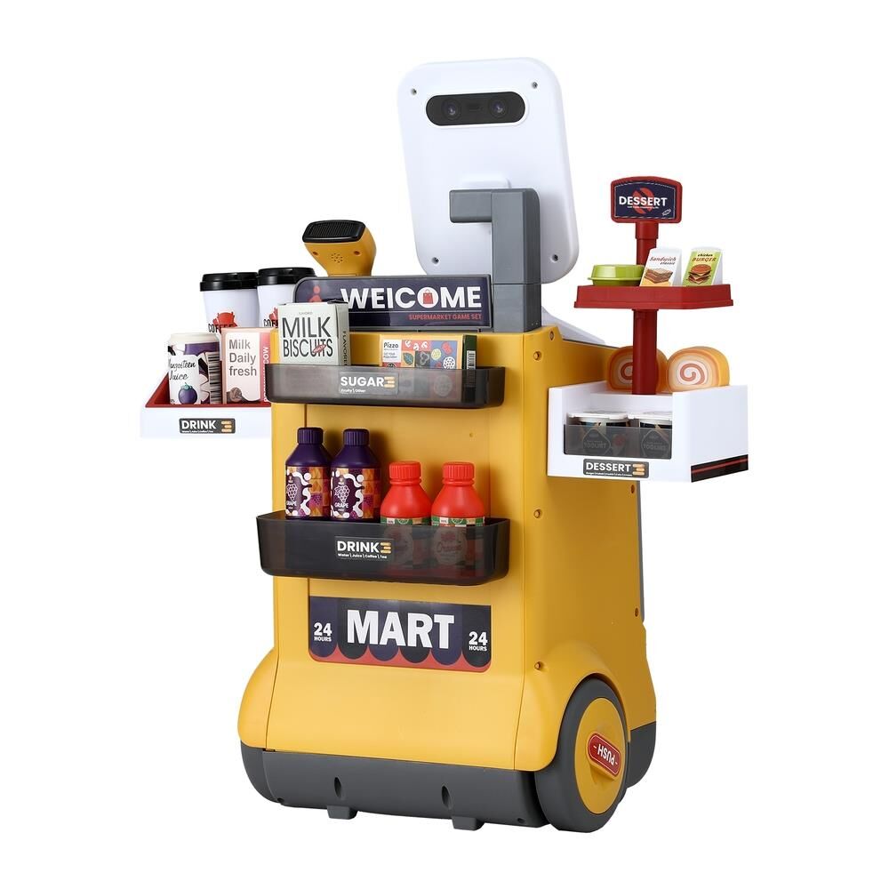 Featuring a colourful supermarket pretend play set with 48pcs accessories, this pretend play set is perfect for kids to perform shopping role plays with friends and parents. The play set comes with a mini barcode scanner with sound and lighting features; just like a real one! While the play set provides plenty of fun during play, it is also an excellent educational learning play set for kids; encouraging teamwork, communication, expression and logic exercises. Let's bring this fun and creative supermarket pretend play set home for your loving ones.