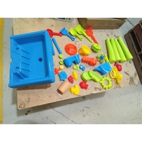 Your children will simply love our Keezi Sand and Water Table! With lots of individual pieces and many moving parts, the sand and water table takes your children into a world of marines, sand, sea and everything else in between. Suitable for children three years and older, the sand and water table is designed and made in accordance with EN71 Safety of Toys certification standards. That means it is completely safe for your children with total peace of mind. Not least, the toy is also made of non-toxic materials. Set it up in the backyard or bring it to the beach, the sand and water table's four-legged design ensures the assembly stays firm and steady on both sand and water despite its light weight. Your children will have a whale of a time playing with the waterwheel, rotating windmill and water slide. Neatly packaged in a colourful box, the sand and water table is the perfect gift for the season or any birthday event. Set sail with one today!