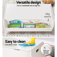 Keep your kids' room clutter-free with our 2-in-1 Keezi kids' storage box. It's a perfect storage solution that ensures your space remains neat and tidy with all your kids' toys, books, and other stuff hidden inside it. It's spacious enough to accommodate all your kids' things. Additionally, our Keezi wooden storage box flaunts a versatile design. You can use it as a storage box and a bookshelf. It has a spacious bookshelf that allows kids to store multiple reading books, colouring books, and comics, and the sturdy bookshelf can hold up to 15kg of weight in addition to 30kg storage box weight capacity. The storage box constructed from a 12mm thick MDF board that ensures its sturdiness and durability, and the solid wood legs keep our storage box stable and prevent shaking. Furthermore, our storage box has a durable top lift lid with reliable hinges and air gap handle for ease of use, and the smooth surface makes it easy to clean. Just a simple wipe is enough to keep it looking like new. It has smooth corners, soft-closing hinges, and an eco-friendly and non-toxic paint finish, making it safe for kids and preventing accidents. All of these amazing things make our wooden storage box a mandatory piece of furniture in your kids' room or playroom. Purchase it today.