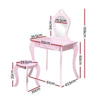 Keezi Kids Vanity Dressing Table Stool Set Mirror Drawer Children Makeup Pink