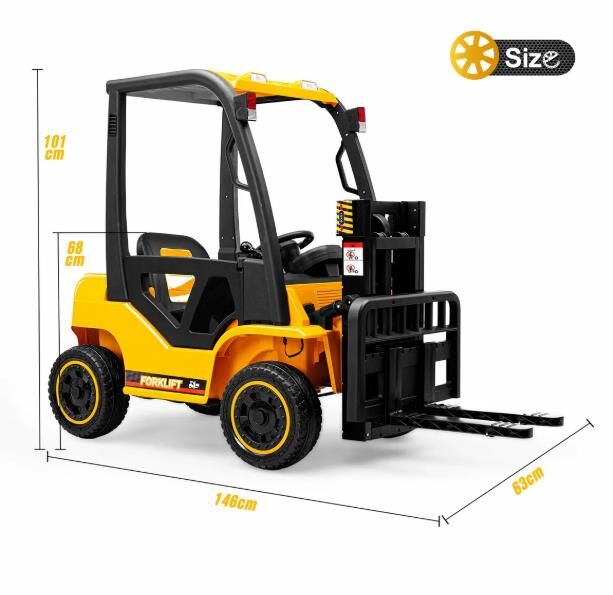 - Ride on Forklift with Realistic Functions: Measuring 146 x 63 x 101 cm, this kids’ forklift is suitable for 37-95 months and withstands a maximum weight of 30 kg. With a 12V 4.5AH rechargeable battery, this ride on toy runs for 1-2 hours after 8-12 hours of charging and has a speed range of 2-6 km/h.