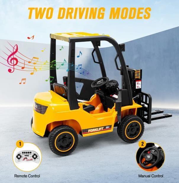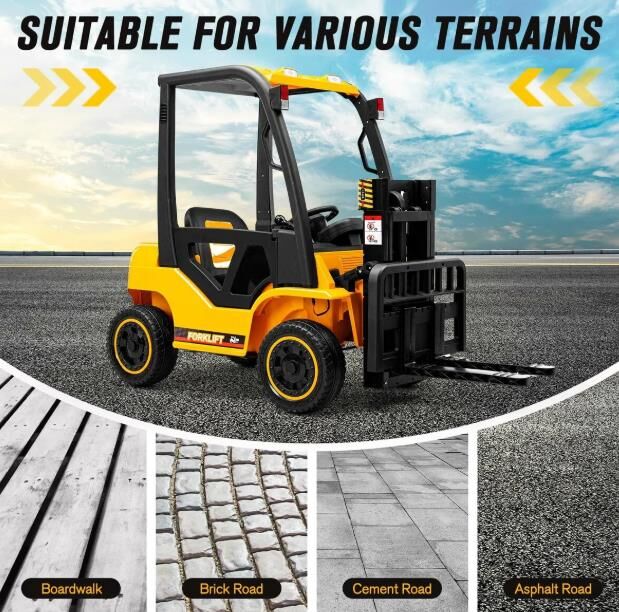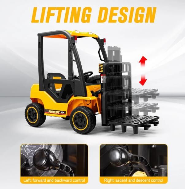 - Realistic Design: This 12V electric forklift features liftable forks and a removable pallet, allowing children to control the arm fork movement through the right control stick and feel like a real forklift operator
