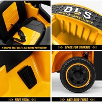Create the opportunity for your child to experience the world of forklift operation while providing hours of fun with this kid’s electric ride on forklift. With 146 x 63 x 101 cm measurements, the ride on car is built to offer a spacious and ergonomic seating area and withstand a maximum weight of 30 kg. Powered by a reliable 12V 4.5AH rechargeable battery, this electric forklift delivers 1 to 2 hours of uninterrupted playtime on a single full charge in just 8 to 12 hours at a speed range of 2 to 6 km/h. Packed with liftable forks, a removable pallet, a premium foot pedal, and a flexible control stick, the forklift truck allows children to control the fork movement independently and immerse themselves in a lifelike forklifting experience. Designed with safety in mind, the electric vehicle is engineered with a reinforced seat belt, anti-skid tyres, and parental remote control. Meanwhile, the built-in LED lights and cool stereo system make playtime more engaging and add extra entertainment on the go.