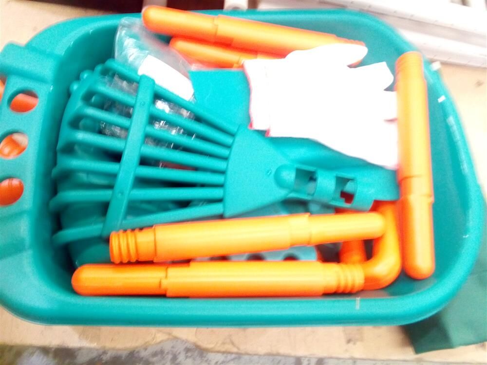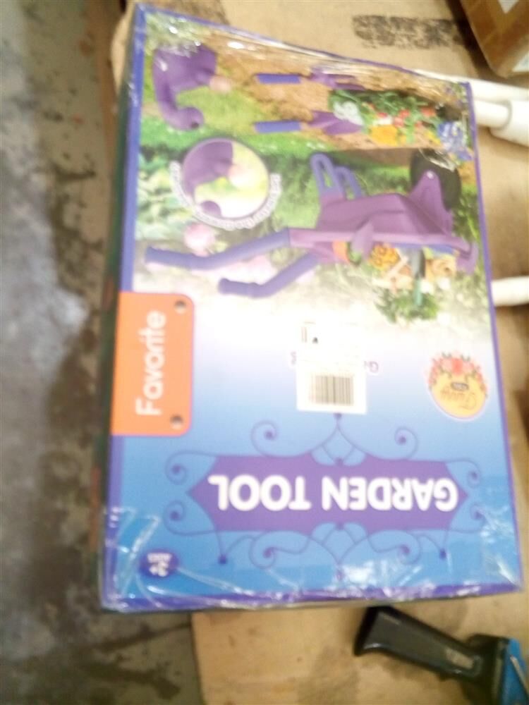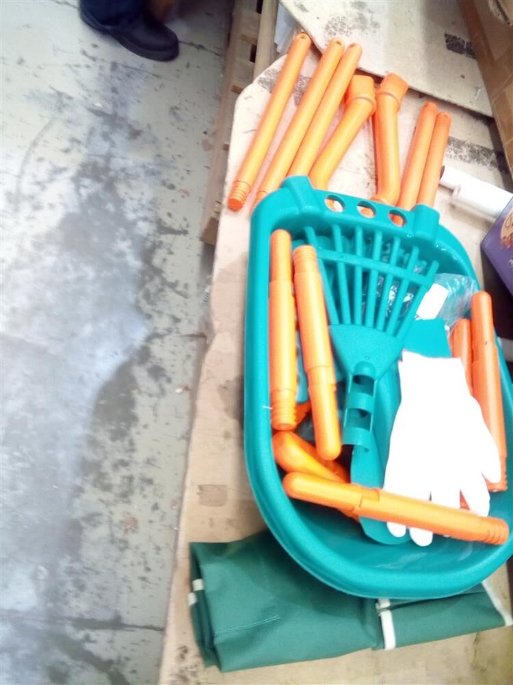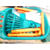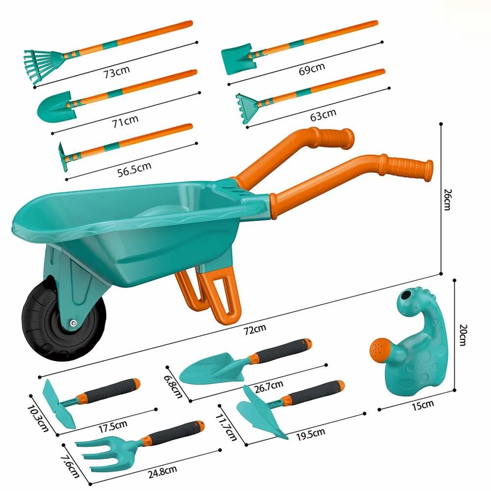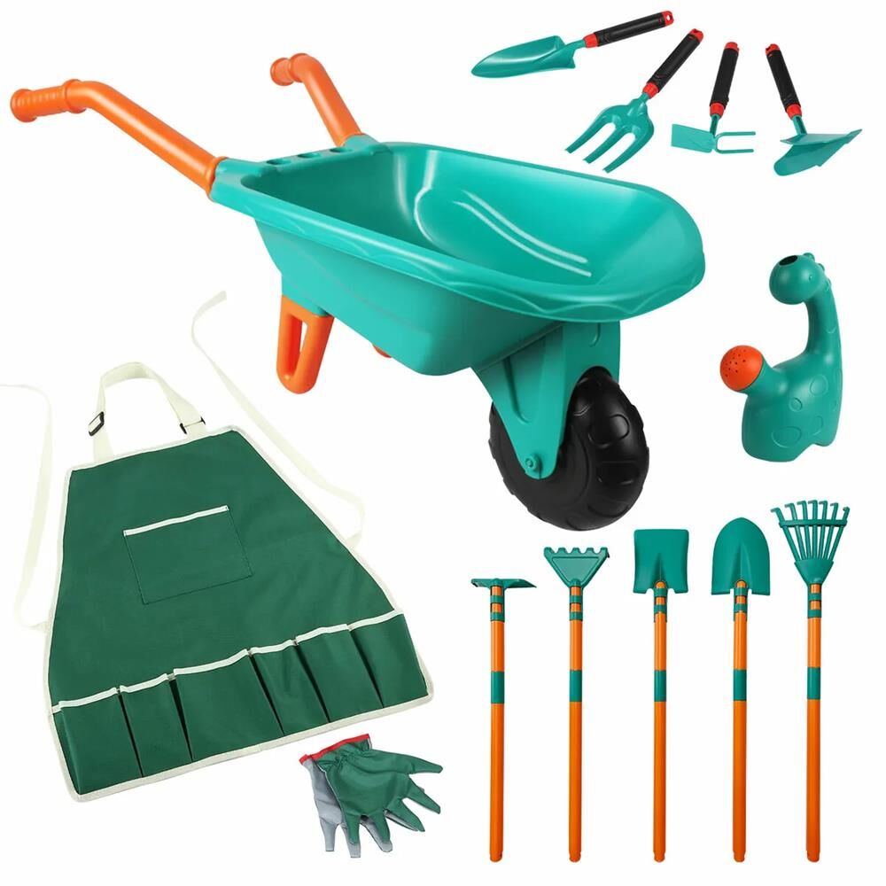 1 x wheelbarrow 4 x small handle tools 1 x watering can 5 x long handle gardening tools 1 x apron 1 x pair of gloves |