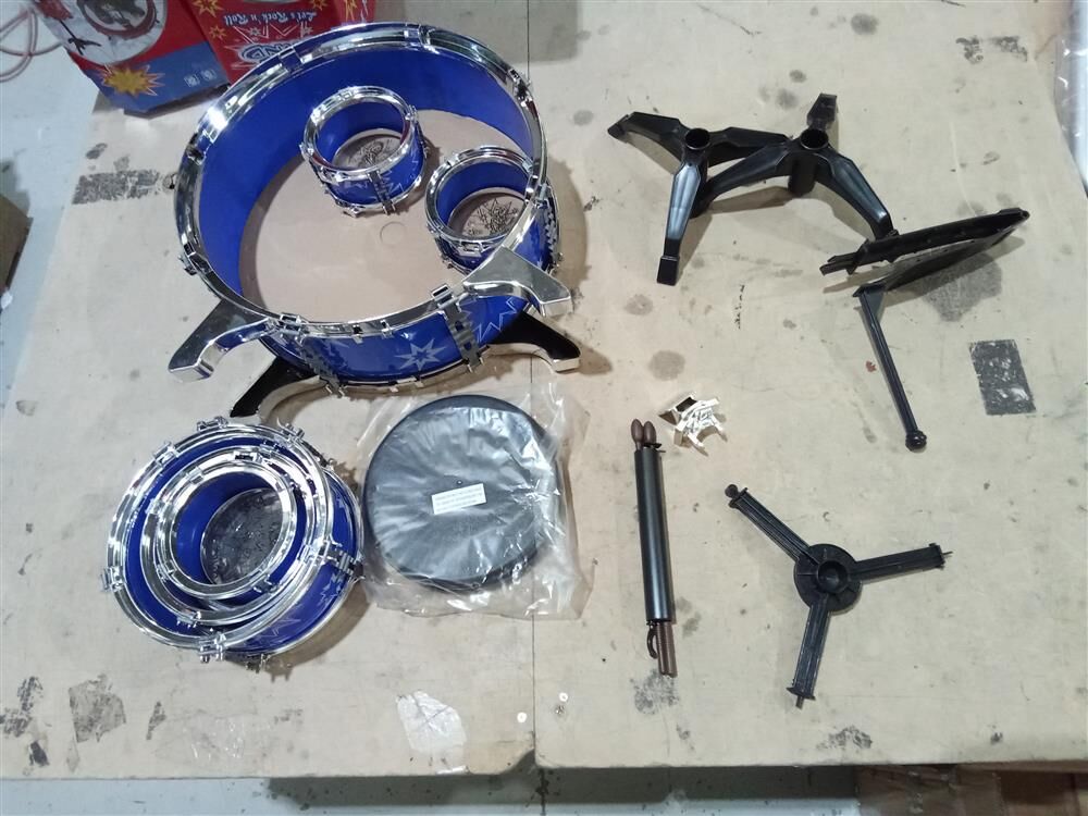 | Components | 1 x Bass Drum 1 x Small Tom Tom 1 x Large Tom Tom 3 x Mini Tom Tom 1 x Cymbal 3 x Pedal Mechanism 2 x Drum Stick 1 x Stand Chair |