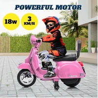 For kids who love motorcycles, this Vespa PX150 licensed ride on motorcycle is a must-have. Durably built from high quality construction, this electric motorcycle is eco-friendly, non-toxic and safe for kids to enjoy countless adventures. Also, it also enhances your child's fine and gross motor skills, hand-eye coordination, and confidence, while aiding in problem-solving. Modelled after a real Vespa PX150, it features two training wheels, a power on/off button, a braking foot pedal, and two non-slip handles for an authentic and thrilling experience. Plus, the large, non-slip tyres ensure smooth driving, while the auxiliary wheels provide added safety. The additional features like bright headlights and taillights, built-in horns and music players bring kids endless fun and joy. Make their Christmas or birthday unforgettable with this exceptional ride-on toy car!