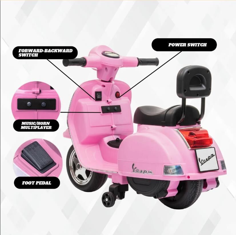 - Authentic Driving Experience: This electric motorcycle is officially licensed by VESPA PX150 and certified to EN71 Standard Safety of Toys, providing a realistic, safe and thrilling adventure for kids.