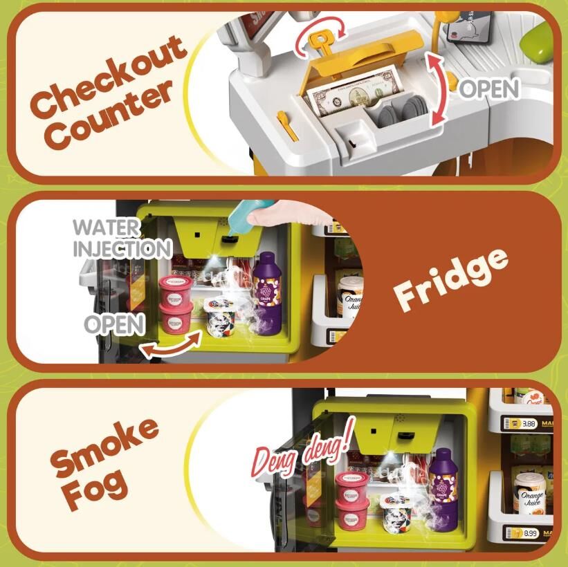 - Features and Functions: This playset includes a shopping trolley and a working scanner for more interactive play for your little one. Light and sound functions are also included to create a more realistic play for your little one.