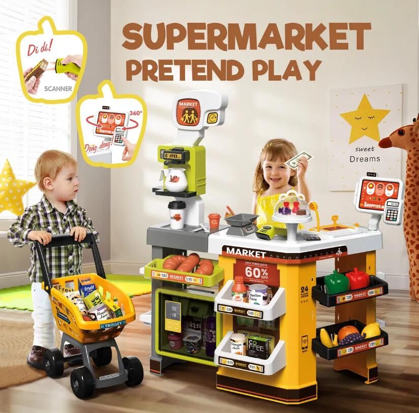 Kids Supermarket Pretend Playset Toy Food Store Shopping Trolley Cash Register
