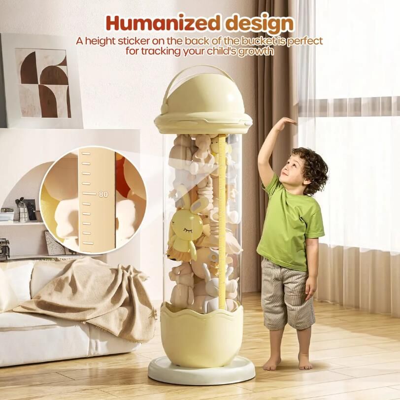 Make your kid’s room more organised for play and creativity with this Large Kids Plush Toy Storage Tube Stuffed Animal Zoo Doll Organiser Box Bucket. Standing at 172x31cm, this vertical toy storage tube offers spacious space to collect your child’s cherished toys while minimising floor usage. Moreover, the efficient two-way zipper allows for easy and quick access, and the transparent design ensures your kids to spot and retrieve their favourite plush toys easily. Besides, the included wheels facilitate effortless movement between rooms, making organisation a breeze. Further, the decorative stickers allow you to personalise the storage tube and a height chart helps track your child’s growth. Finely crafted in sturdy, dust-resistant materials, it promises remarkable durability and longevity. Versatile and functional, this toy box doubles as a decorative display for dried flowers, sculptures or other cherished items, adding charm and elegance to any room decor.