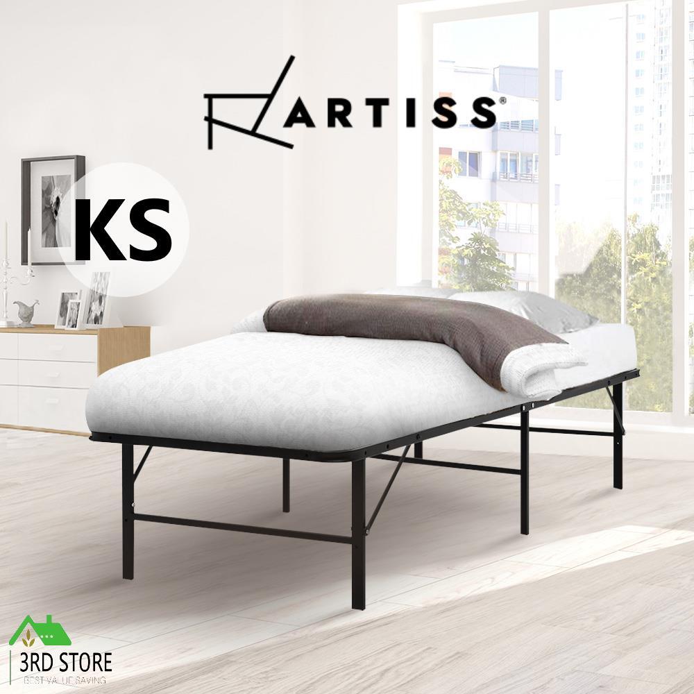Artiss King Single Folding Bed Frame Metal Mattress Base Portable Black Platform