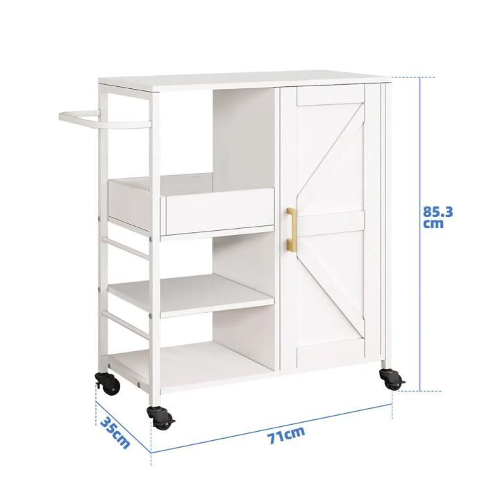 - This kitchen island cart offers extra storage space to hold utensils and prepared food. You can also easily move it around the kitchen, dining room, or garden to enjoy mealtime or teatime with family and friends.