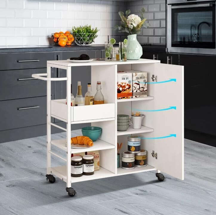- The 360-degree industrial wheels are easy to move and can bear heavy loads without breaking. Some of them are lockable to ensure high stability when stopped. The side push handle lets you move the kitchen serving cart anywhere or hang towels for easy access.