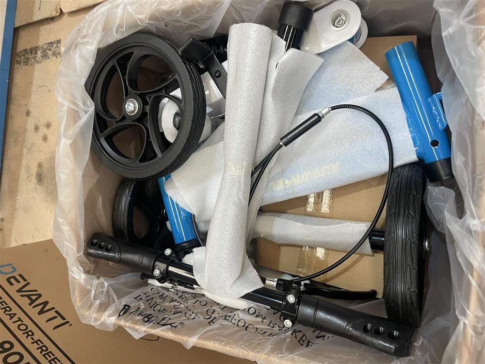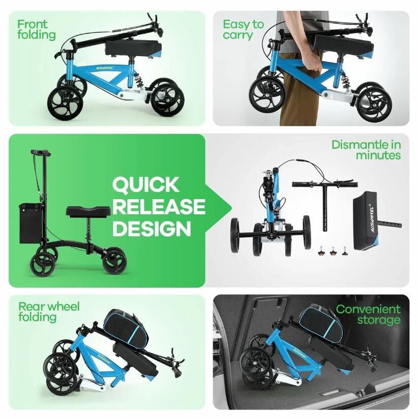 - The Steerable Knee Scooter also features handlebars with a quick folding mechanism for easy transport and storage and a dual-ankle design for extreme durability.