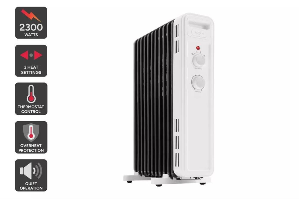 Enjoy the comfort and convenience of consistent, quiet heating with the Kogan 2300W 11Fin Oil Heater. Its powerful heat distribution and whisper-quiet operation will create a cosy atmosphere in any room while its 3 versatile heat settings can be adjusted to suit your needs.