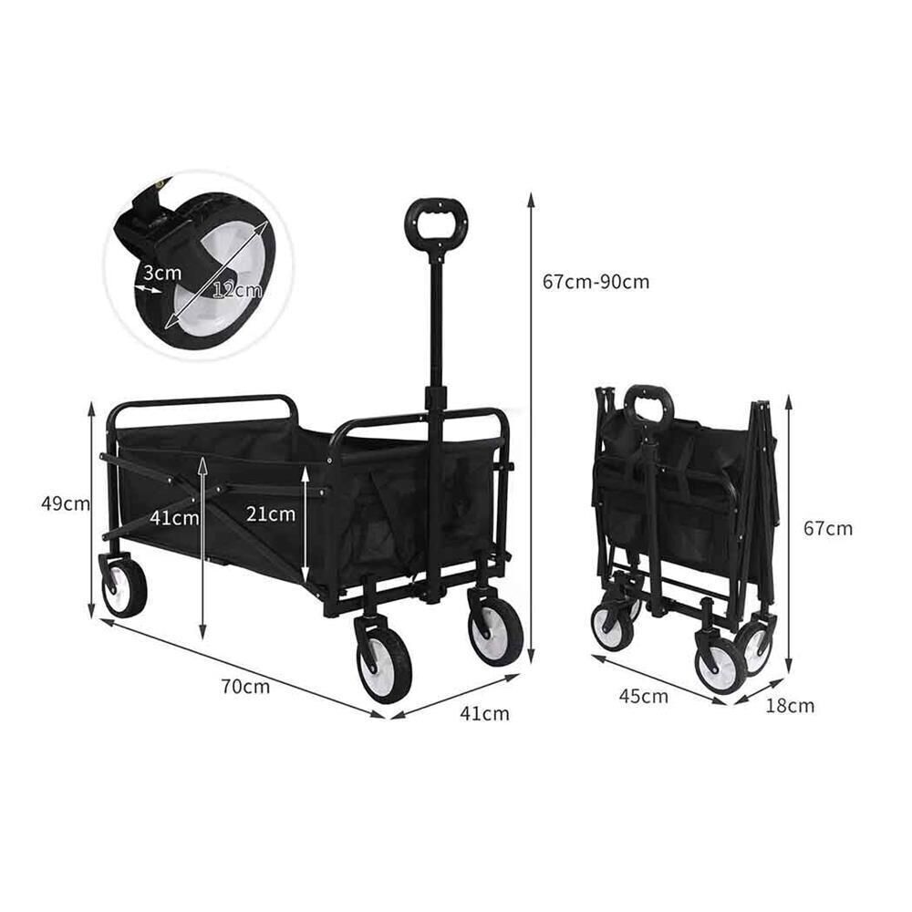 Lambu Garden Trolley Cart Foldable Picnic Wagon Outdoor Camping Trailer Black