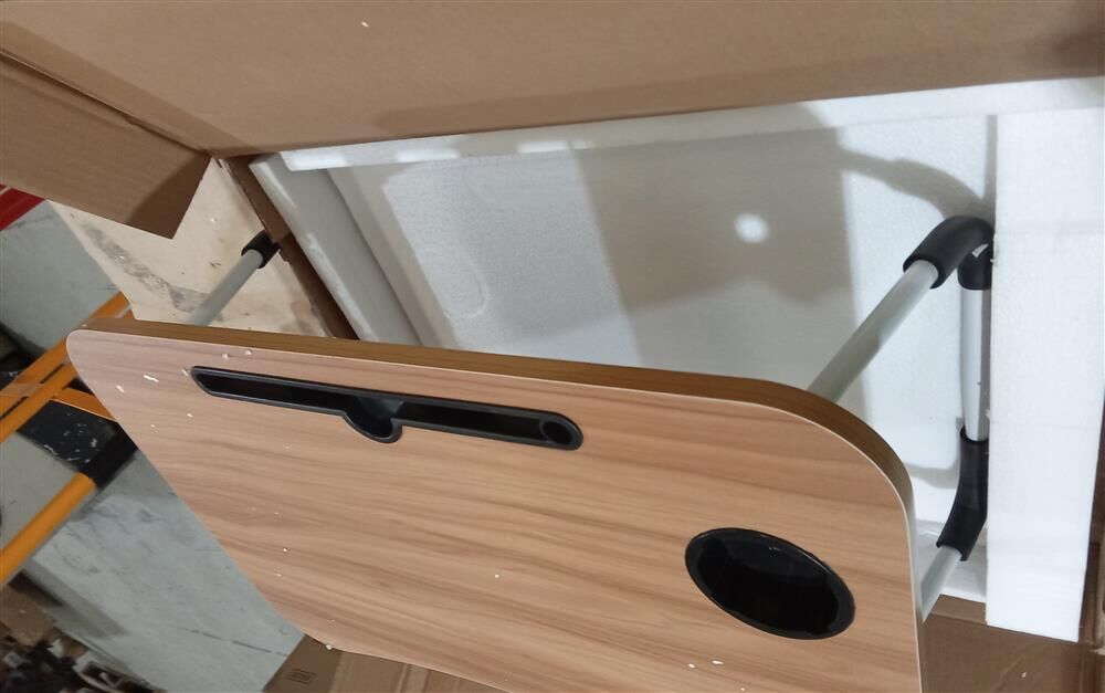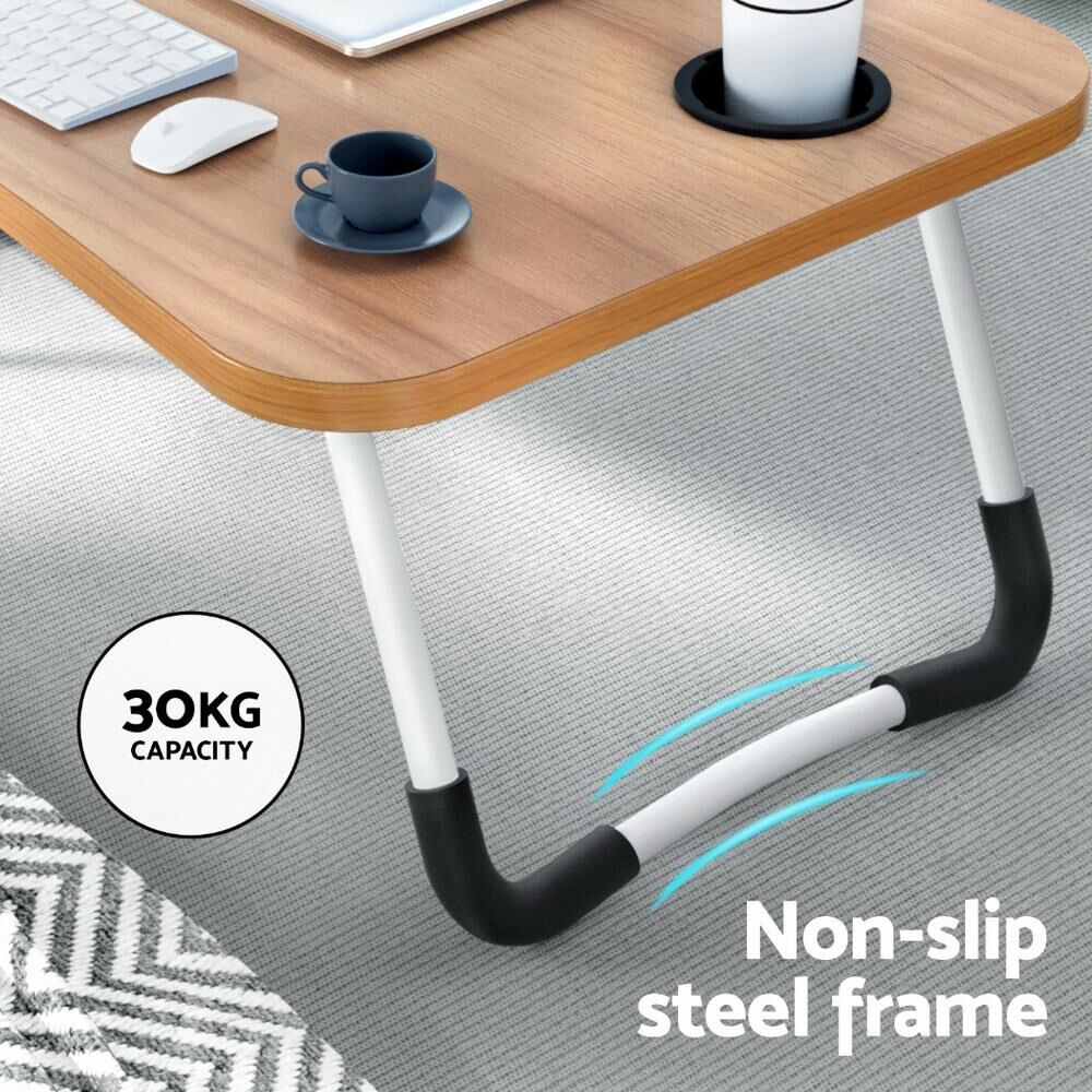 Thoughtfully designed, the desk includes a non-slip steel frame for stability, a built-in slot for tablets or phones, and a handy cup holder for added convenience. Whether you're working from bed, the couch, or outdoors, this desk provides a safe and practical solution to enhance your productivity and comfort.