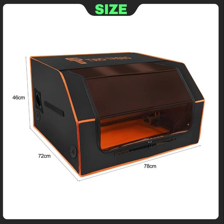 - 780x720x460mm Large Size: With dimensions of 30.7x28.3x18.1 inches, this enclosure accommodates a vast majority of 400mm x 400mm laser cutters on the market, even with the rotary and air pump in use