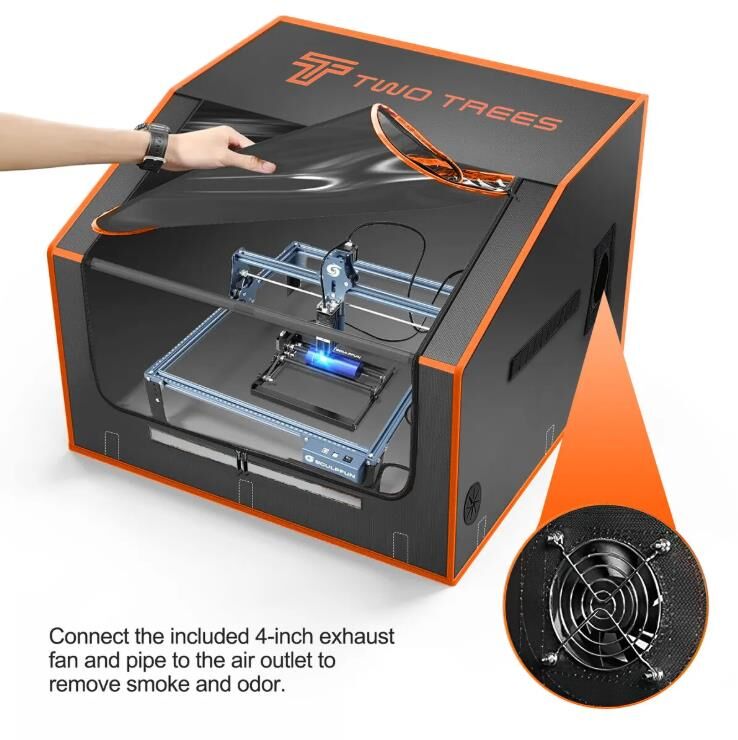Our Laser Engraver Protective Cover is a state-of-the-art solution designed to ensure safety and convenience during laser engraving. Made from ultra-high temperature fireproof material, the cover can withstand temperatures of up to 500°, providing a secure work environment. The comprehensive ventilation system includes vents, a fan, and a vent hose to reduce smoke, odors, and fire hazards. The lightweight frame is easy to assemble and move, and the Velcro straps secure the cover in place. The large viewing window offers eye protection without the need for additional goggles. With generous dimensions, the enclosure can accommodate various laser cutters and provides ample space for operation. Our Protective Cover combines safety, functionality, and innovation for an optimal engraving experience.