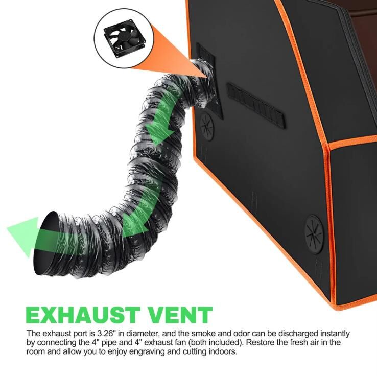 - With Ventilation System: This kit includes vents, an 8025 fan, and a 9.9ft vent hose to block laser deflection, reduce cutting/engraving smoke and smells, and protect against fire, dust, smoke, order, and noise