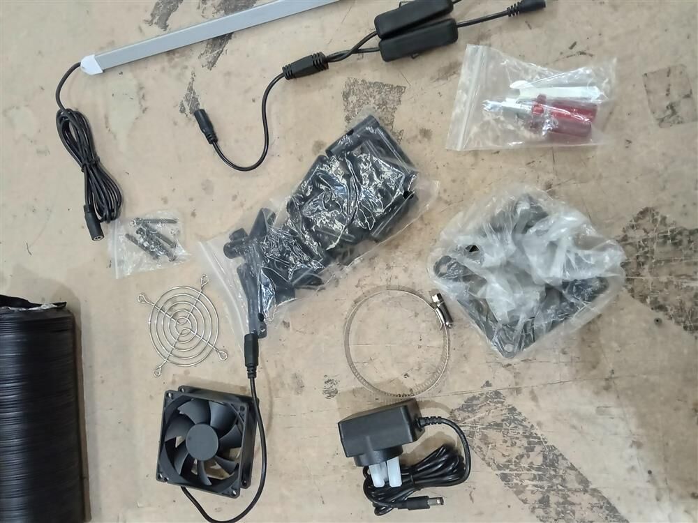 Engraving Machine Protective Cover X 1 T-Shaped Tee X 4 Tube A 368 mm X10 Tube B 338.3 mm X 4 Tube C 247 mm X 4 Tube D 235 mm X 2 Tube E 240 mm X 2 Tube F 420 mm X 2 2 Way Connector X 9 Fan X 1 Throat Hoop X 1 Air Guide X 1 Exhaust Pipe X 1 Screw Kit X 5 One to Two Adapter Wiring X 1 Led Tube X 1 Power Adapter X 1 Tool Kit X 1 |