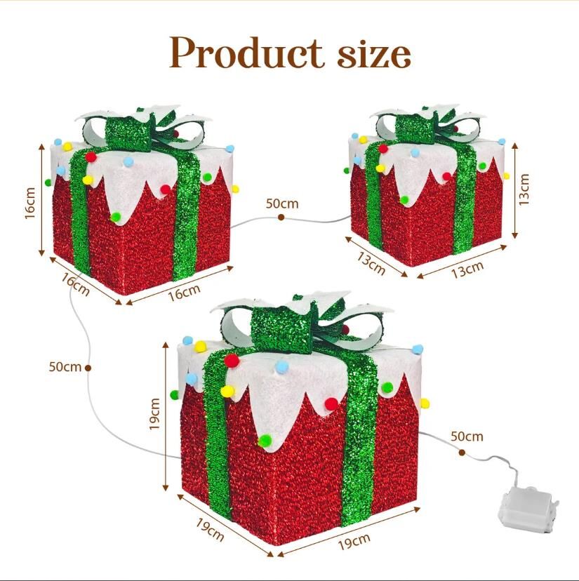 LED Christmas Lights Decorations Outside Strip Gift Boxes Home Display Ornaments