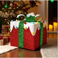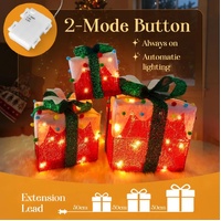 Have the most magical Christmas ever with this stunning set of three light-up gift boxes, designed to transform any space into a cosy wonderland. Featuring durable metal and rich fabric in an elegant red, white, and black colour scheme, these versatile decorations feature 60 warm white LEDs that glow brightly each evening, thanks to a smart 6-hour auto timer that saves battery life while delivering worry-free cheer. Complete with ground nails, cable ties, and extension cords, this ready-to-display kit lets you create captivating indoor or outdoor scenes in minutes, whether lining your garden path, accenting your mantel, or gifting a sparkling surprise. Bring an elevated seasonal decor with these reusable, weather-resistant presents, which are a timeless addition to your family's traditions.