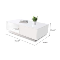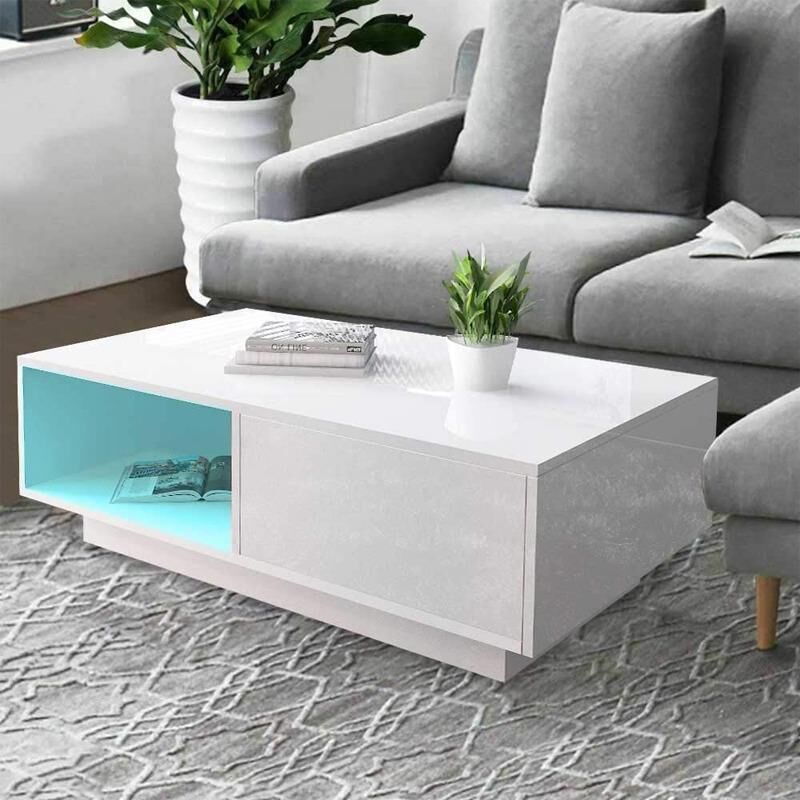 LED Light Coffee Table, is an outstanding realisation of this sought-after design creates a beautiful ambience, With its clean lines and smooth, white coffee table offers storage spaces, yet conveys a light and fresh appeal to the senses. Your living room to wow all your houseguests and maintain the sleek appearance and they provide ample storage for your living room, essentials. \n \nFeatures \nLED light \n15mm melamine particle board with UV high gloss \nModern design \nOpen drawer \nAmple storage \nEasy to clean \nEasy assembly \n \nSpecifications: \nBrand: Laila's Creations \nMaterial: Melamine particle board \nEdge: PVC (Polyvinyl Chloride) \nFinish: UV high gloss \nThickness: 15mm \nOverall dimensions: 95cm x 31cm x 45cm \nColour: White \n \nPackage Content \n1 x LED Light Coffee Table \n1 x Assembly Manual