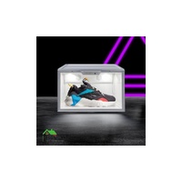 LED Sneaker Display Case Lighted Shoe Storage Boxes Sound Control Magnetic White