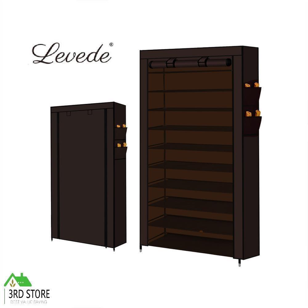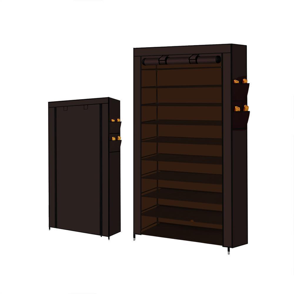 Levede 10 Tier Shoe Rack Portable Storage Cabinet Organiser Wardrobe Brown Cover