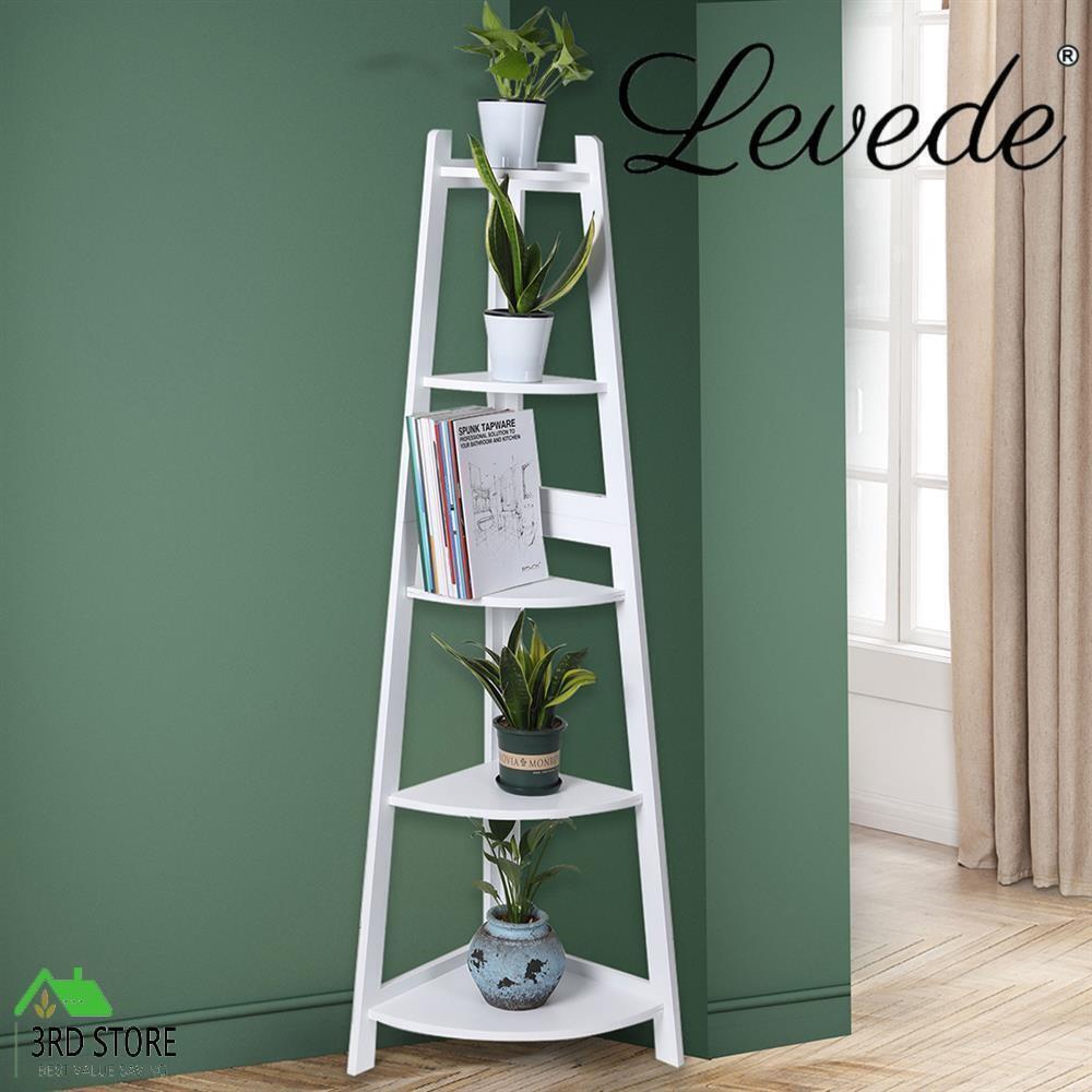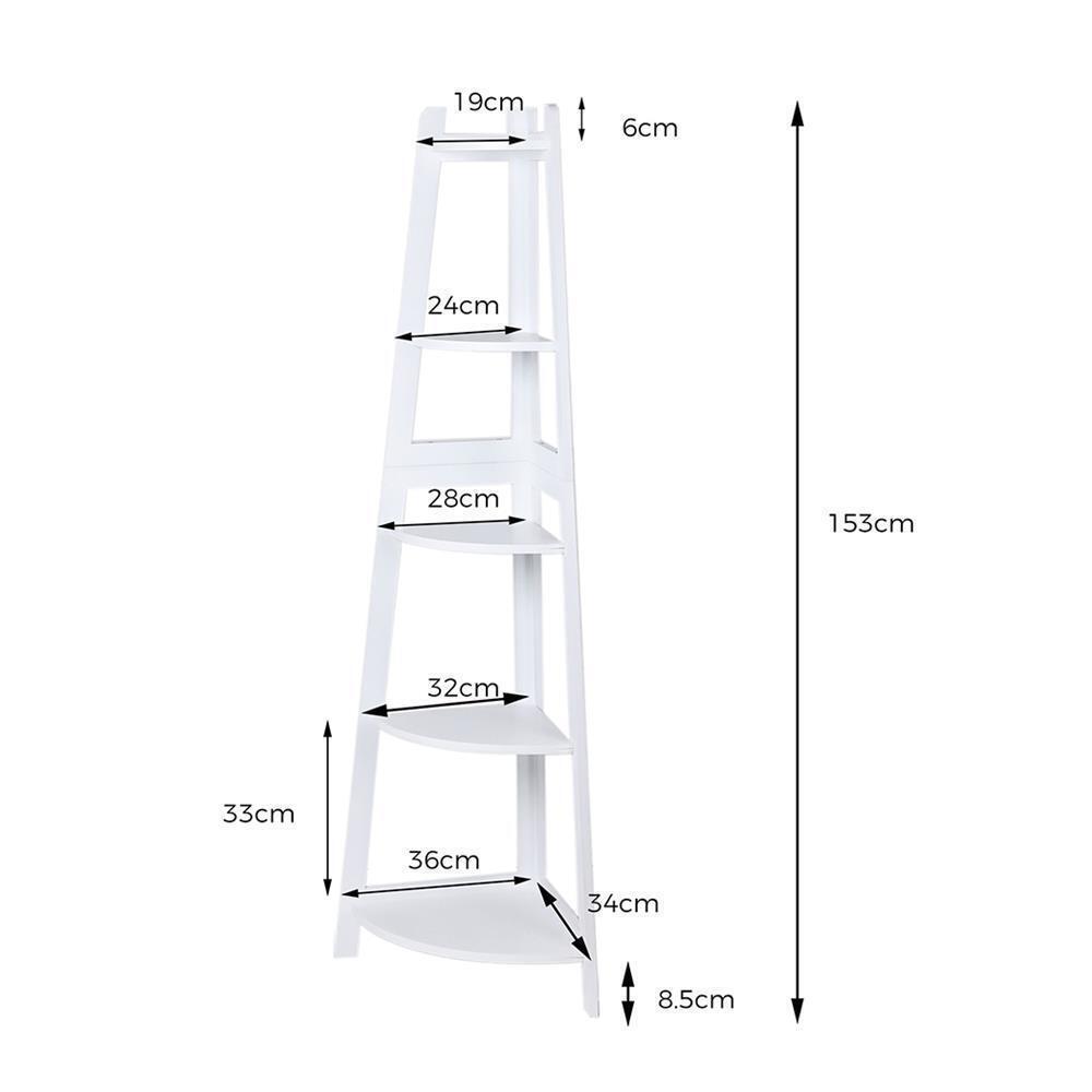 Levede 5 Tier Corner Shelf Wooden Storage Home Display Rack Plant Stand White