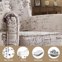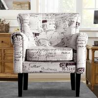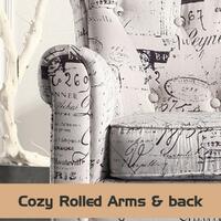 The Upholstered chair is the perfect chair for any room that exhibits an affluent or upscale decor. Aside from the sleek black legs, this chair is upholstered entirely with charming letter in vintage tones. It offers comfortable cushioned seating and the armrests and top portion of the back curve, adding to the exquisite and ed styling of this chair. It is also great as an accent chair to match with your existing furniture in your living room, bedroom, office or den.