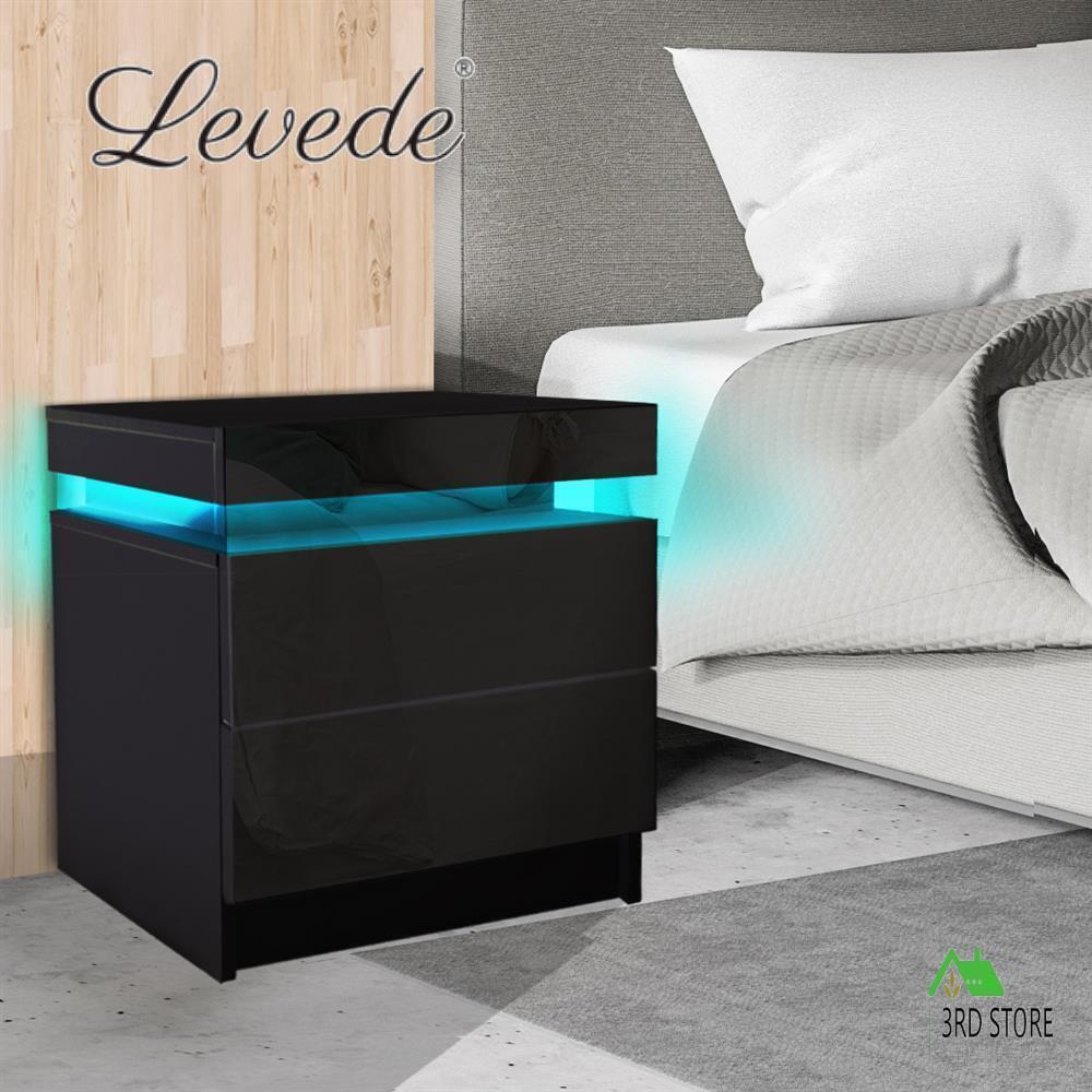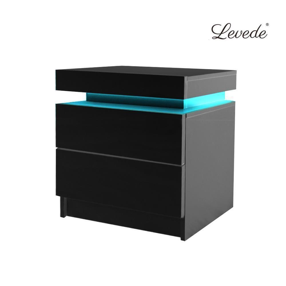 Levede Bedside Tables Side Table 2 Drawers RGB LED High Gloss Nightstand Cabinet