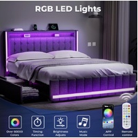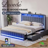 Levede Double Queen Bed Frame Headboard RGB LED Lights 4 Drawer USB Charge